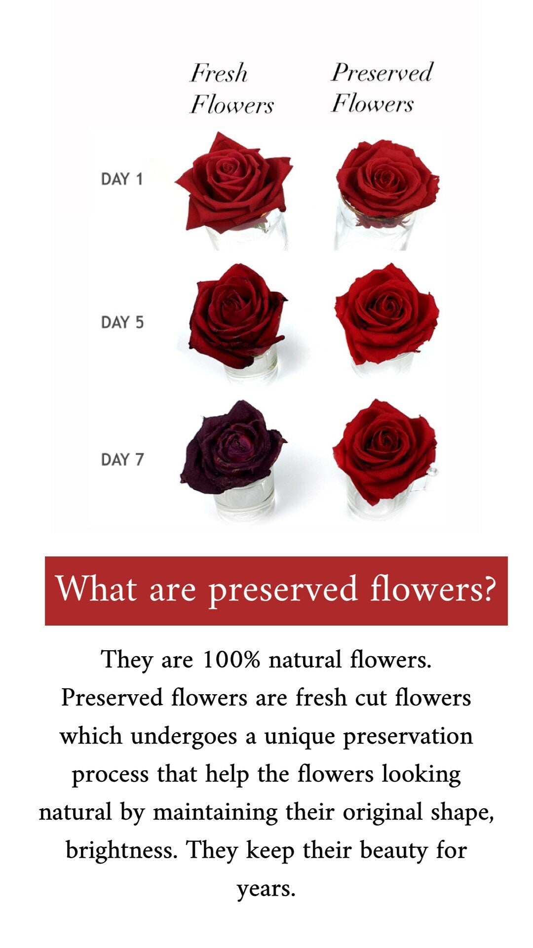 They last longer than fresh cut flowers. (from 2-10 years)