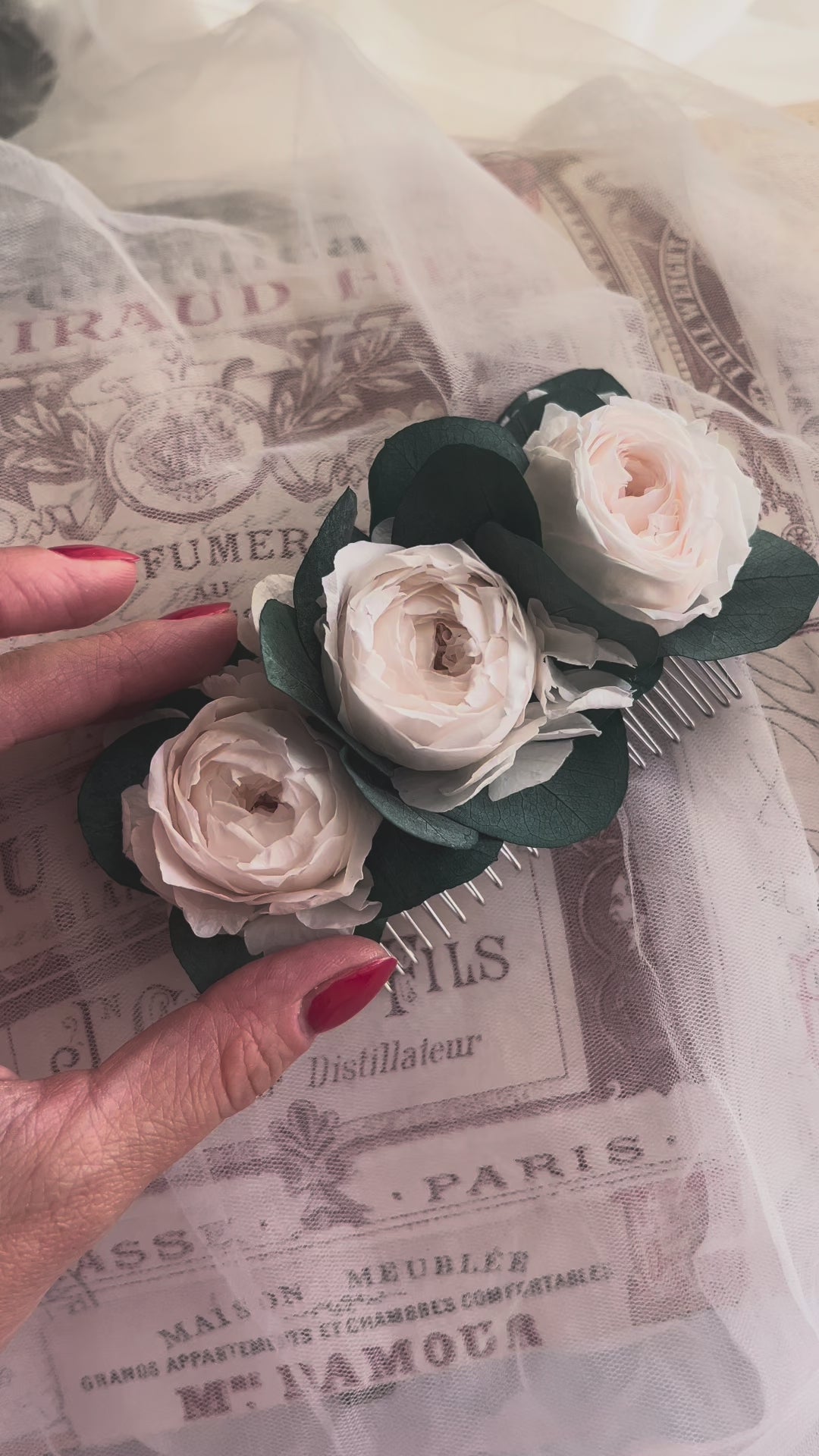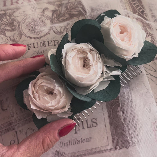 Romantic Peony Roses with Eucalyptus Hair Comb for Wedding - Limited Ed